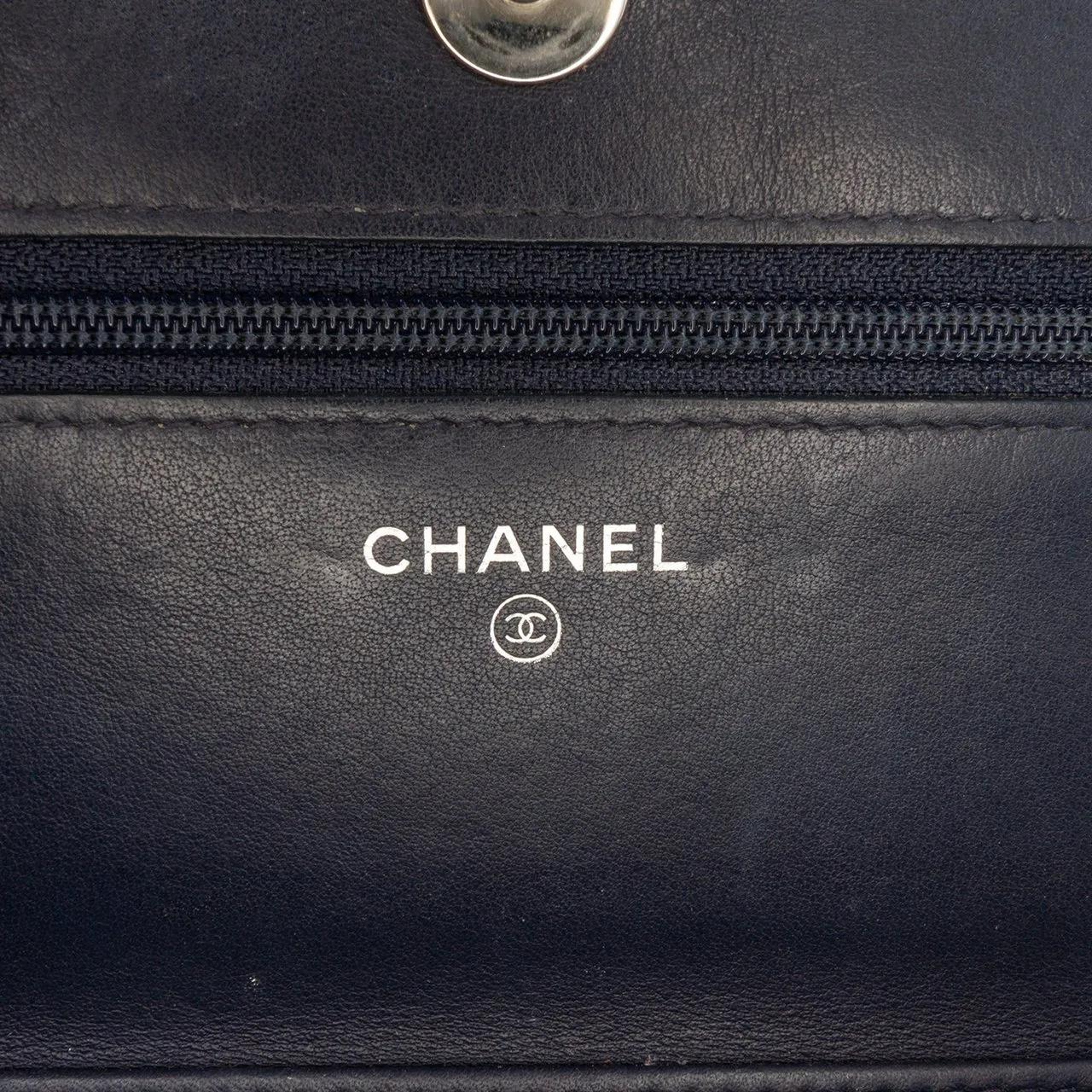 Eine kompakte CC Square Stitched Wallet on Chain vereint gesteppte Kalbsleder mit einem ledergewebten Kettenriemen, einem Vorderklappenverschluss mit Magnetverschluss, einem Innenreißverschlussfach, Einschubtaschen und Kartenfächern für eine ordentliche Organisation. Die strukturierte Silhouette verfügt über ein schwarzes Äußeres mit einem Gittermuster und lebhaften blauen, roten und lila Nähten, metallischen, ineinandergreifenden CC-Details und den Maßen 19,5 x 14,0 x 3,0 cm; hergestellt in Italien, 2018-2019.Dies ist ein bereits geliebter Artikel; sein Zustand ist wie folgt beschrieben.? Hinterseite außen zerkratzt? Hinterseite außen mit anderem verunreinigt? Unterseite außen abgenutzt? Schloss zerkratzt? Ecken außen abgenutzt? Vorderseite außen zerkratzt? Vorderseite außen mit anderem verunreinigt? Griff außen abgenutzt? Innertasche mit anderem verunreinigt? Innenfutter zerknittert und zerkratzt? Innenfutter mit anderem verunreinigt? Praktische Halterung zerkratzt? Seite außen abgenutzt? Oberseite außen mit anderem verunreinigt? Reißverschluss zerkratztZustandsbewertung: B+. Ein Echtheitszertifikat ist auf Anfrage erhältlich.