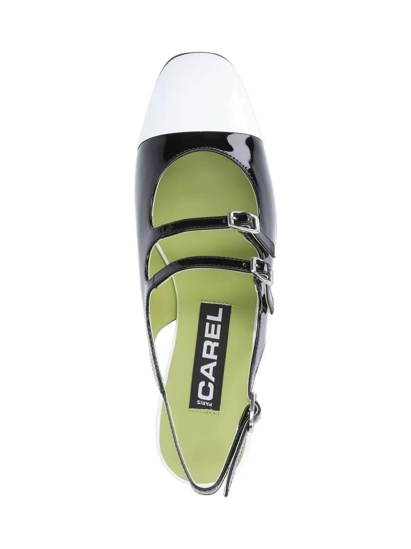 Diese Mary-Jane-Schuhe von CAREL verkörpern moderne Eleganz mit ihrem schlanken Obermaterial aus Lackleder und der kontrastierenden runden Zehenpartie. Die verstellbaren Riemen vorne und hinten sorgen für einen sicheren Halt, während der quadratische weiße Absatz einen zeitgenössischen Flair verleiht. Mit einer langlebigen Ledersohle verbinden diese Schuhe Stil mit Nachhaltigkeit, hergestellt aus zertifizierten Materialien (LWG).- Obermaterial aus Lackleder- Verstellbare Riemen vorne und hinten- Quadratischer weißer Absatz- Langlebige Ledersohle- Hergestellt aus zertifizierten Materialien (LWG)Die angegebenen Größen sind italienische Größen. Für die beste Passform beachten Sie bitte unsere Größentabelle.