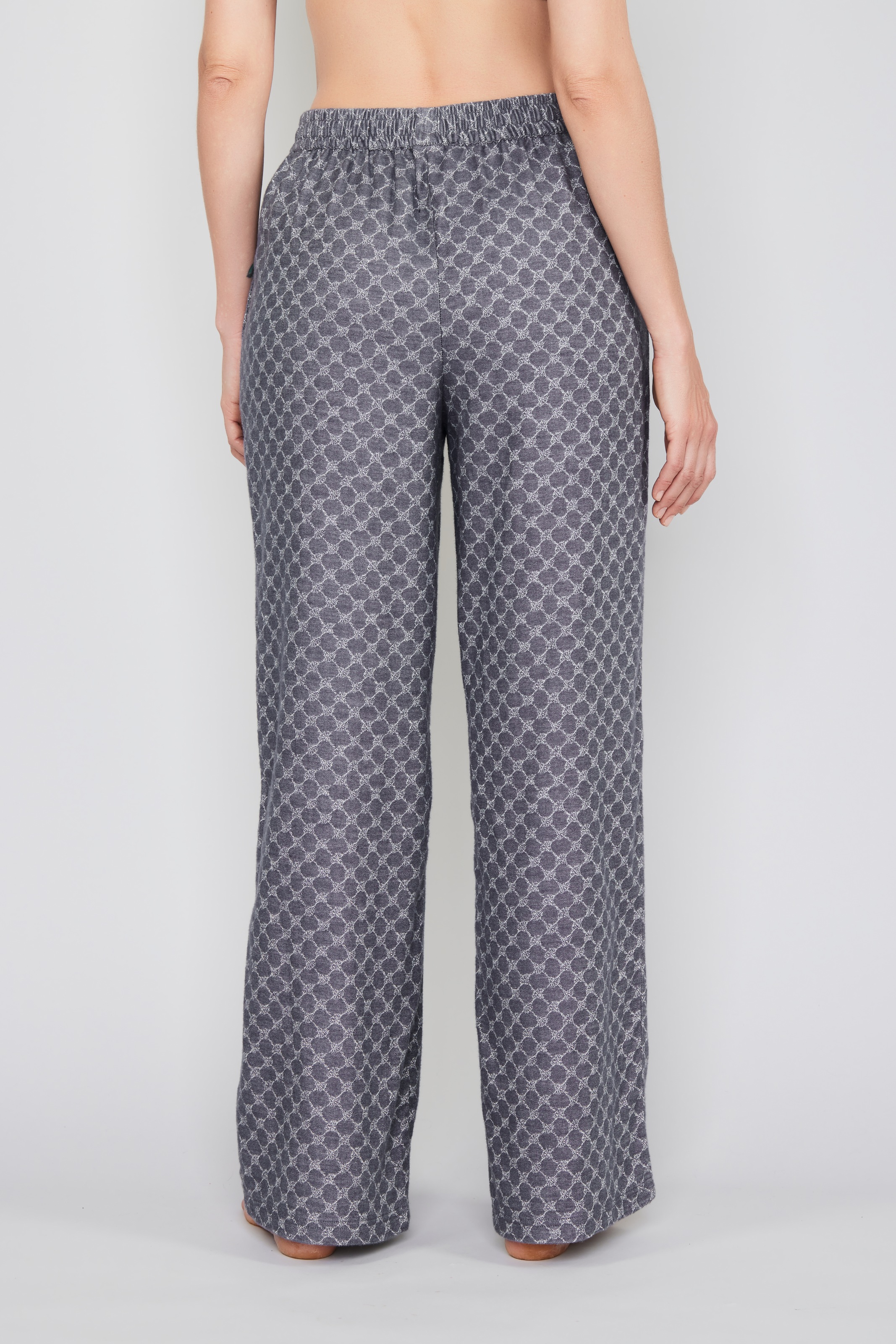 In einem eleganten Grauton strahlt diese Serie zeitlose Raffinesse und stilvolles Understatement aus., Material: Materialzusammensetzung: Obermaterial: 50% Baumwolle, 50% Viskose, Materialart: Flanell, Pflegehinweise: Maschinenwäsche, Farbe: Farbbezeichnung: dunkles grau, Passform/Schnitt: Leibhöhe: normal, Bundabschluss: elastischer Bund, Bundabschlussdetails: mit Bindeband, Beinform: weit, Details: Applikationen: Allover-Druck, Taschen: Eingrifftaschen, Verschluss: Gummizug, Verschlussdetails: zum Binden, Besondere Merkmale: Baumwoll-Viskose-Mix, Cornflower-Allover-Muster, Taschen