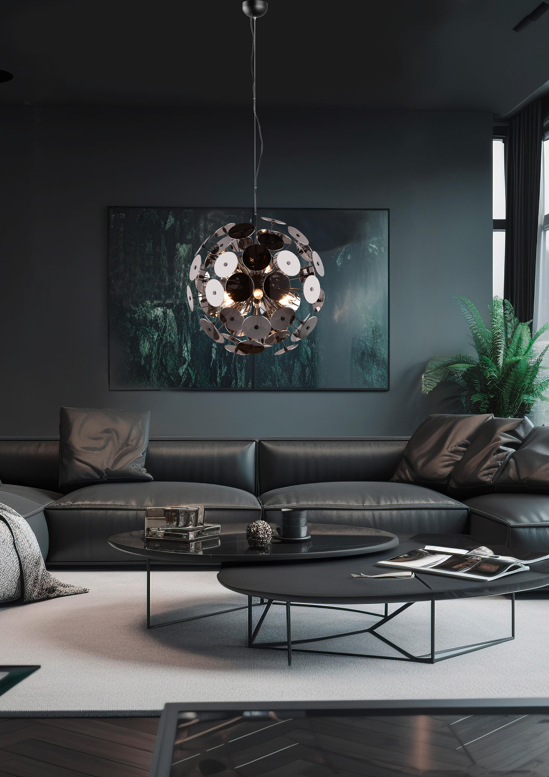Trio Leuchten Pendelleuchte Discalgo, Schwarz, Chrom, Metall, Glas, 150 cm, höhenverstellbar, Lampen & Leuchten, Innenbe...