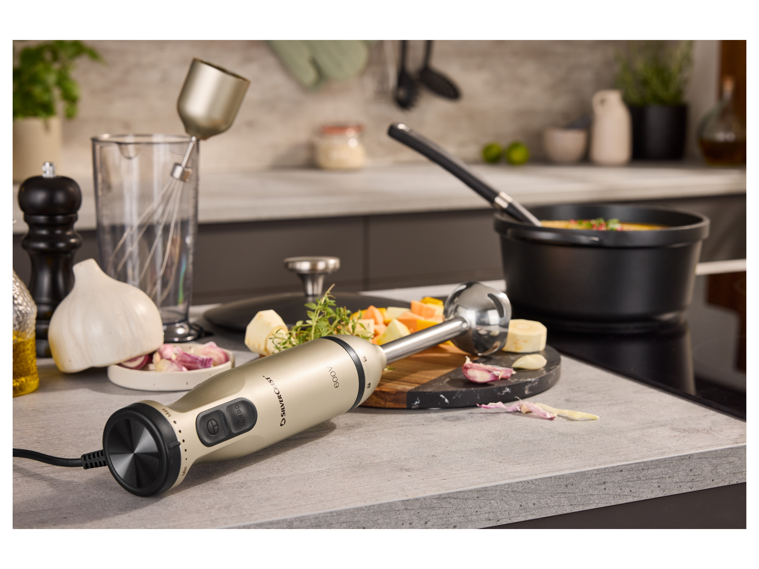 2 in 1 zum Mixen und Pürieren Stufenlos einstellbare Geschwindigkeit Turbotaste zum kräftigen Impulsmixen Mixfuß mit 2-Klinge... Mehr erfahren