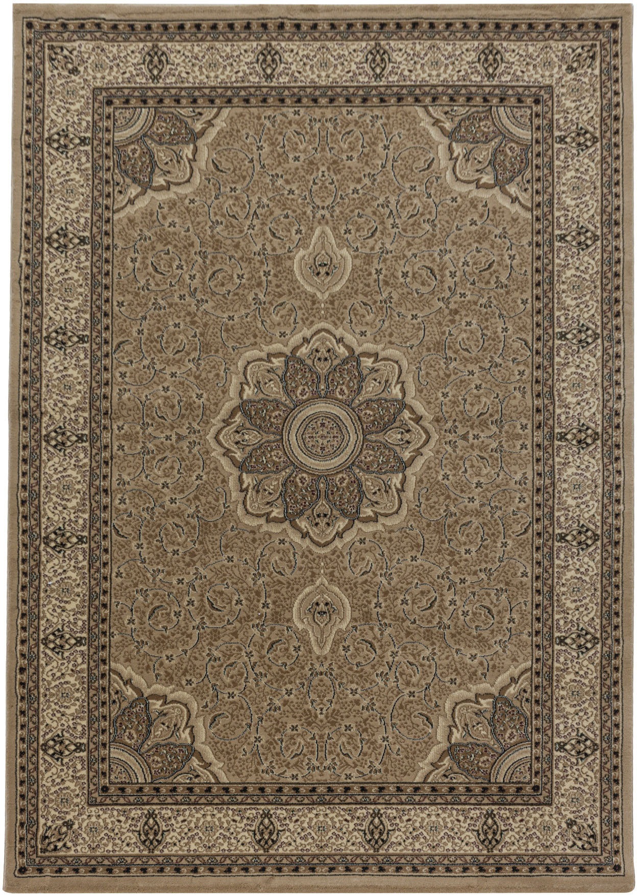 Durch die strapazierbare und dichte Oberfläche ist der Teppich hervorragend für den täglichen Gebrauch geeignet. Das Tägliche beruht nur auf das Saugen mit einem herkömmlichen Staubsauger. Bei Flecken bitte mit Wasser (kohlensäurehaltiges oder lauwarmes empfohlen) durchspülen und mit einem saugfähigen Tuch, Lappen oder Papiertuch abtupfen. Für hartnäckige Flecken können Sie handelsübliche Mittel anwenden., Maßangaben: Breite: 200 cm, Länge: 290 cm, Höhe: 10 mm, Konfektion: Fixmaß, Farbe & Material: Farbbezeichnung: beige, Material: Polypropylen (PP), Rückenmaterial: Jute, Optik/Stil: Design: orientalisch, Ausstattung & Funktionen: Fußbodenheizungsgeeignet: ja, Oberflächenbeschaffenheit: strapazierfähig, Wendeteppich: nein, Trittschalldämmend: ja, Outdoorgeeignet: nein, Rutschhemmend beschichtet: nein, Rutschhemmende Unterlage empfohlen: ja, Pflegehinweis: Schmutzabweisend: ja, Pflegehinweise: regelmäßig absaugen, ausklopfen, professionelle Reinigung empfohlen, Wissenswertes: Maschinell gewebter Teppich: Beim Auslegen des Teppichs kann durch das Aufrollen der Teppich etwas wellig erscheinen, dieses legt sich nach kurzer Zeit aus. Sie können dieses etwas beschleunigen wenn Sie den Artikel in gegenläufiger Richtung nochmals aufwickeln., Produktdetails: Anzahl Teile: 1 Stk., Form: rechteckig, Herstellungsart: maschinell gewebt, Materialzusammensetzung: Obermaterial: 100% Polypropylen