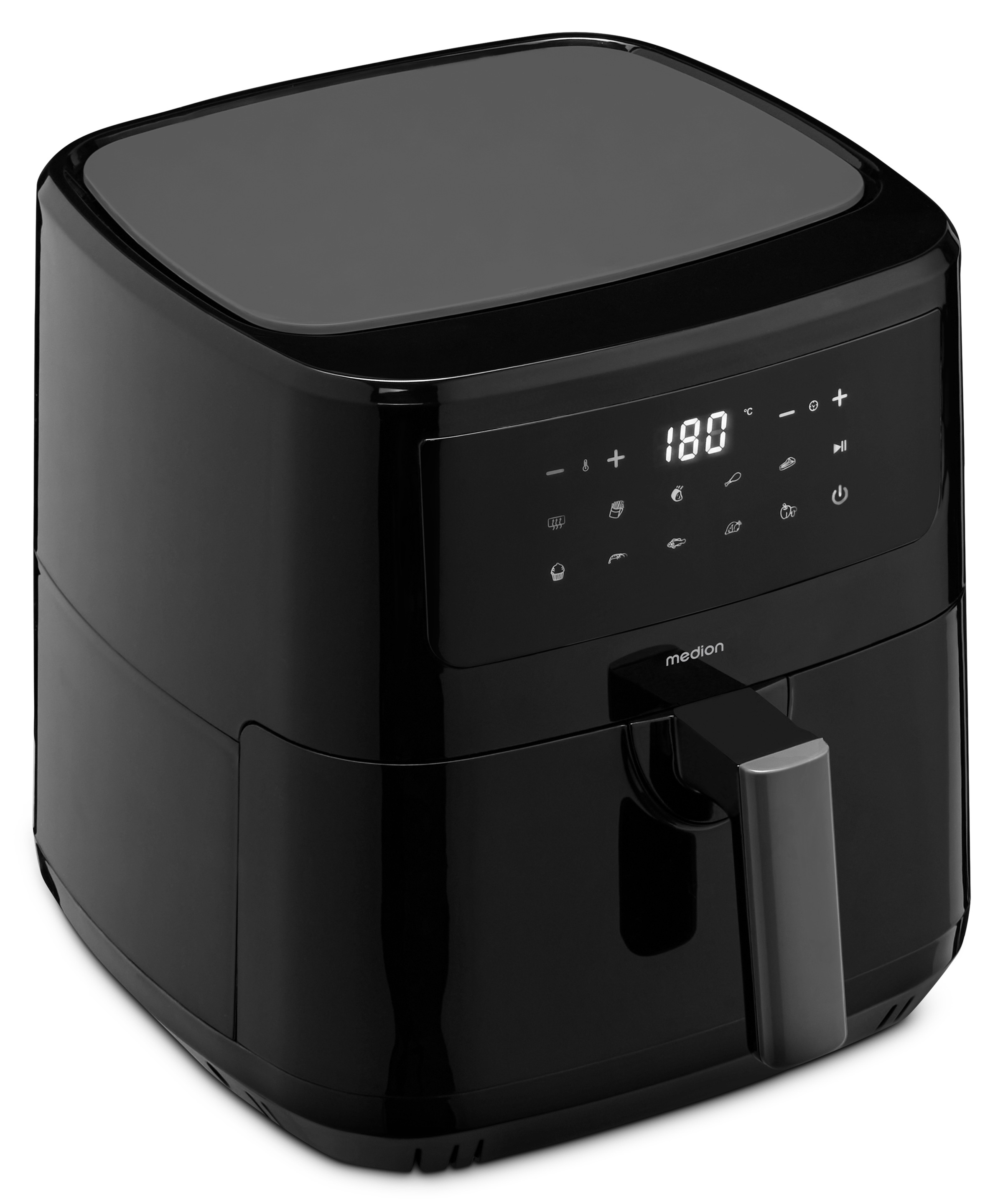 Die Heißluftfritteuse von MEDION brilliert mit doppelter Leistung. Zwei leistungsstarke Heizelemente aus Edelstahl setzen hier den Maßstab. Das obere Heizelement mit einer beeindruckenden Leistung von 1.800 Watt sowie einem unteren Element von 350 Watt, agieren in perfekter Harmonie und bringen somit Knusprigkeit und Geschmack präzise auf den Punkt. Lassen Sie Ihre kulinarische Kreativität unbeschränkt fließen. Ein geräumiger Fittierkorb mit einem Volumen von 6,8 Litern bietet großzügigen Platz, um die ganze Familie zu verwöhnen. Ihre kulinarische Entdeckungsreise wird durch 9 bereits vorprogrammierte Einstellungen, die intuitiv über das Touch-Display selektiert werden können, zum Kinderspiel. Ein punktgenaues Garen und makellose Ergebnisse werden durch die Temperaturkontrolle, die einen Bereich von 50°C bis 200°C abdeckt, sowie einem digitalen 60-Minuten Timer und der automatischen Abschaltung sichergestellt. 2 Heizelemente aus Edelstahl Entdecke die nächste Stufe des Kochens mit unserer Heißluftfritteuse, die mit nicht nur einem, sondern gleich zwei hochwertigen Heizelementen aus Edelstahl ausgestattet ist. Das obere Heizelement mit einer beeindruckenden Leistung von 1.600 Watt sowie einem unteren Element von 400 Watt, agieren in perfekter Harmonie und bringen somit Knusprigkeit und Geschmack präzise auf den Punkt., Allgemein: Weitere Vorteile: Digitaler 60 Minuten Timer und automatische AbschaltungnMit dem digitalen 60-Minuten Timer wird Perfektion so einfach wie noch nie. Du kannst jeden Schritt deines Kochprozesses präzise planen und deine Gerichte werden punktgenau fertiggestellt. Und das Beste daran? Unsere Heißluftfritteuse verfügt über eine intelligente automatische Abschaltung, sodass Du dir nie wieder Sorgen um überkochende Speisen machen musst., Temperaturkontrolle bis zu 200°C mit ÜberhitzungsschutznDie Temperatur unserer Heißluftfritteuse kannst Du präzise bis zu 200°C einstellen. Und keine Sorge, dank unseres fortschrittlichen Überhitzungsschutzes bleibt das Gerät immer im optimalen Betriebsbereich. Du kannst Dich darauf verlassen, dass Deine Mahlzeiten perfekt gegart werden, ohne dabei das Risiko einer Überhitzung einzugehen., Zusätzlicher Einsatz Bereiten Sie Ihre Speisen einfach und schonend in dieser Heißluftfritteuse zu. Besonders das zusätzliche Garrost hilft dabei, dass Ihre Lieblingsgerichte nicht in übersc, Produktdetails: Modellbezeichnung: mit 2 Heizelementen MD11750 P10 XL Duo, großer, Handhabung & Komfort: Art Bedienung: Touch-Bedienung, Temperaturregler: stufenlos, Temperatureinstellung minimal: 50 °C, Temperatureinstellung maximal: 200 °C, Eigenschaften Griffe: Cool-Touch Griff, Farbe & Material: Farbbezeichnung: schwarz, Maße & Gewicht: Höhe: 40 cm, Breite: 33 cm, Tiefe: 33 cm, Gewicht: 6,26 kg, Technische Daten: Leistung: 2000 W, Programme & Funktionen: Zubereitungsfunktionen: Frittieren, Anzahl voreingestellter Programme: 9, Timer mit maximaler Zeitvorwahl: 60 min, Zeitfunktionen: Abschaltautomatik, Timerfunktion, Schutzfunktionen: Überhitzungsschutz, Sicherheitsabschaltung, Ausstattung: Ausstattung: Ein-/Ausschalter beleuchtet, Griffe, Restzeitanzeige, Temperaturanzeige, Timer, Anzahl Frittierkörbe: 1, Verarbeitungsmengen: Fett- / Öl-Füllmenge: 6,8 l, Wissenswertes: Sprachen Bedienungs-/Aufbauanleitung: Deutsch (DE), Product Compliance: WEEE-Reg.-Nr. DE: 31.728.250
