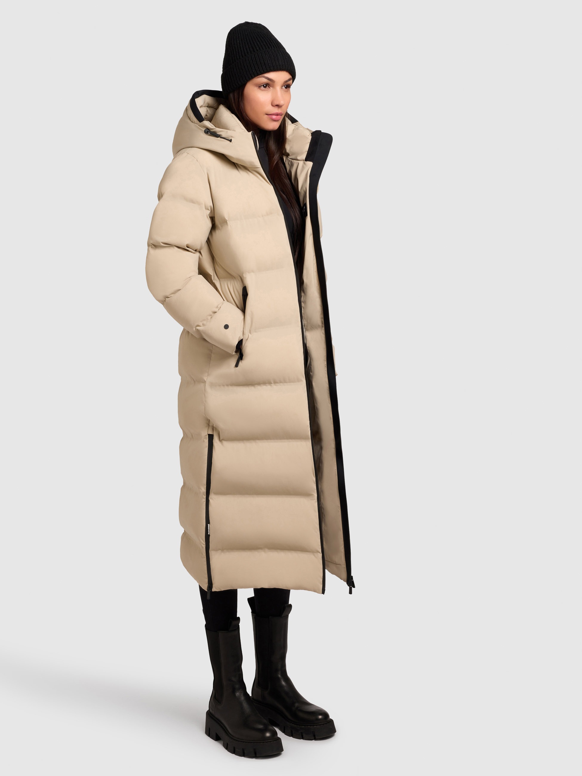 Der warm wattierte und wadenlang geschnittene khujo Mantel LAREA3 schützt zuverlässig vor frostigem Winterwetter. Die verstellbare und hoch schließende Kapuze, elastische Bündchen am Ärmelfutter und Taschenbeutel aus Fleece bezeugen bei diesem Steppmantel einmal mehr die Leidenschaft für Details von khujo. Alle Reißverschlüsse haben eine wasserabweisende Beschichtung, wie der Zwei-Wege-Reißverschluss, die Reißverschlusstaschen und die Reißverschlüsse an den seitlichen Schlitzen., Material: Materialzusammensetzung: 100% Nylon, Materialeigenschaften: wärmend, Pflegehinweise: Handwäsche, Optik/Stil: Optik: unifarben, Farbe: Farbbezeichnung: BEIGE, Passform/Schnitt: Ärmellänge: Langarm, Ärmeldetails: eingesetzt, Ärmelabschluss: elastischer Bund, Rumpfabschluss: gerader Abschluss, Passform: regular fit, Herstellerpassform: normal geschnitten, Details: Kapuze: mit Kapuze, Kapuzendetails: mit regulierbarem Elastikband, Kapuzenfütterung: gefüttert, Taschen: Reißverschlusstaschen, Verschluss: 2-Wege-Reißverschluss, Verschlussdetails: wasserabweisend