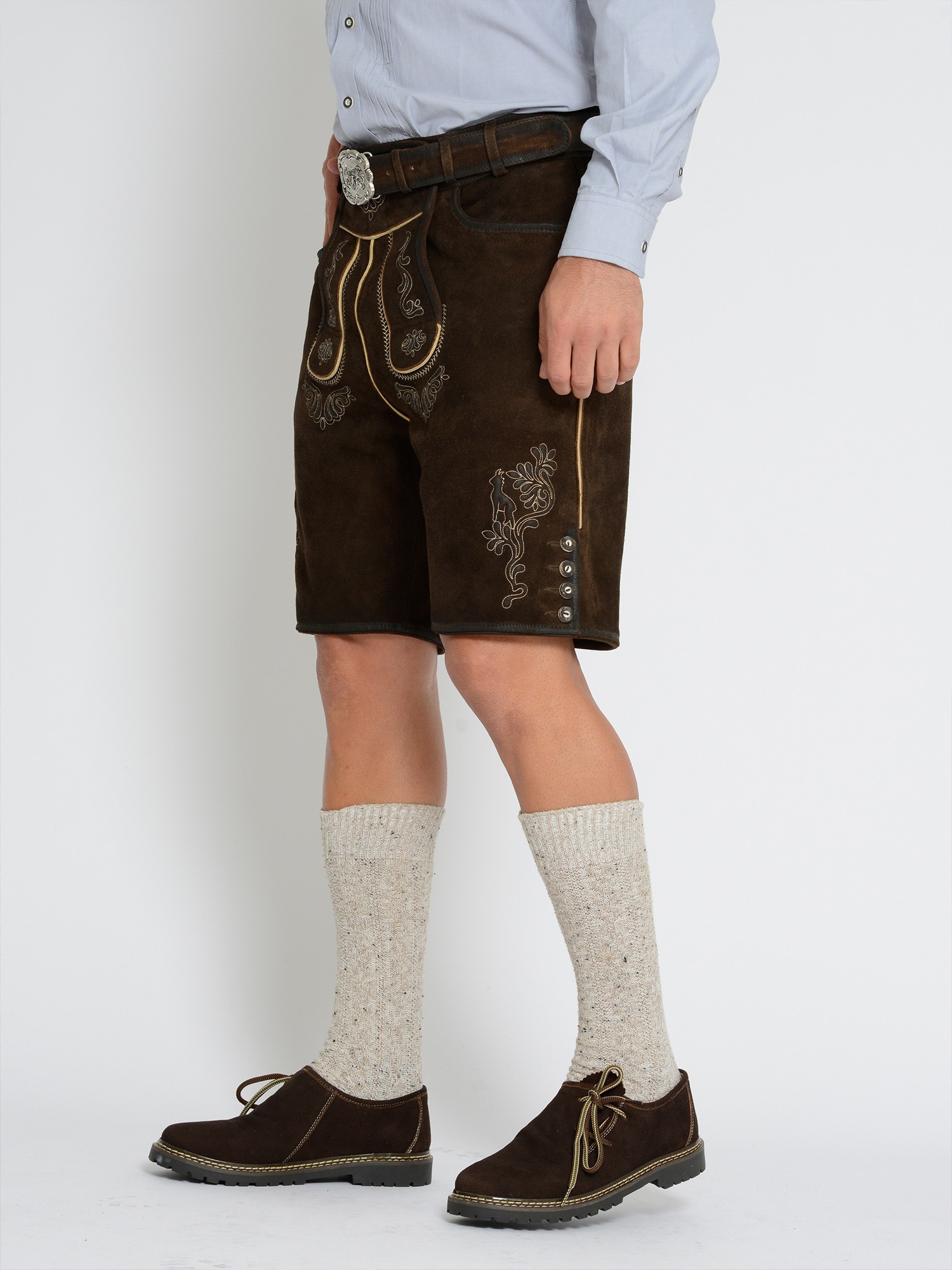 Die Trachtenhose für Herren von JCC vereint Tradition und modernen Komfort. Gefertigt aus robusten Materialien bietet sie eine perfekte Passform und authentische Details wie Stickereien und traditionelle Knöpfe. Ideal für das Oktoberfest, Volksfeste oder festliche Anlässe – diese Trachtenhose ist ein stilvoller Begleiter zu jedem Trachten-Outfit. Langlebig, pflegeleicht und vielseitig kombinierbar, ist sie ein Must-Have für jeden Trachtenliebhaber!, Material: Materialzusammensetzung: Obermaterial: 100% Ziegenvelours, Schnalle aus Metall, Pflegehinweise: Lederreinigung, Farbe: Farbbezeichnung: dark brown