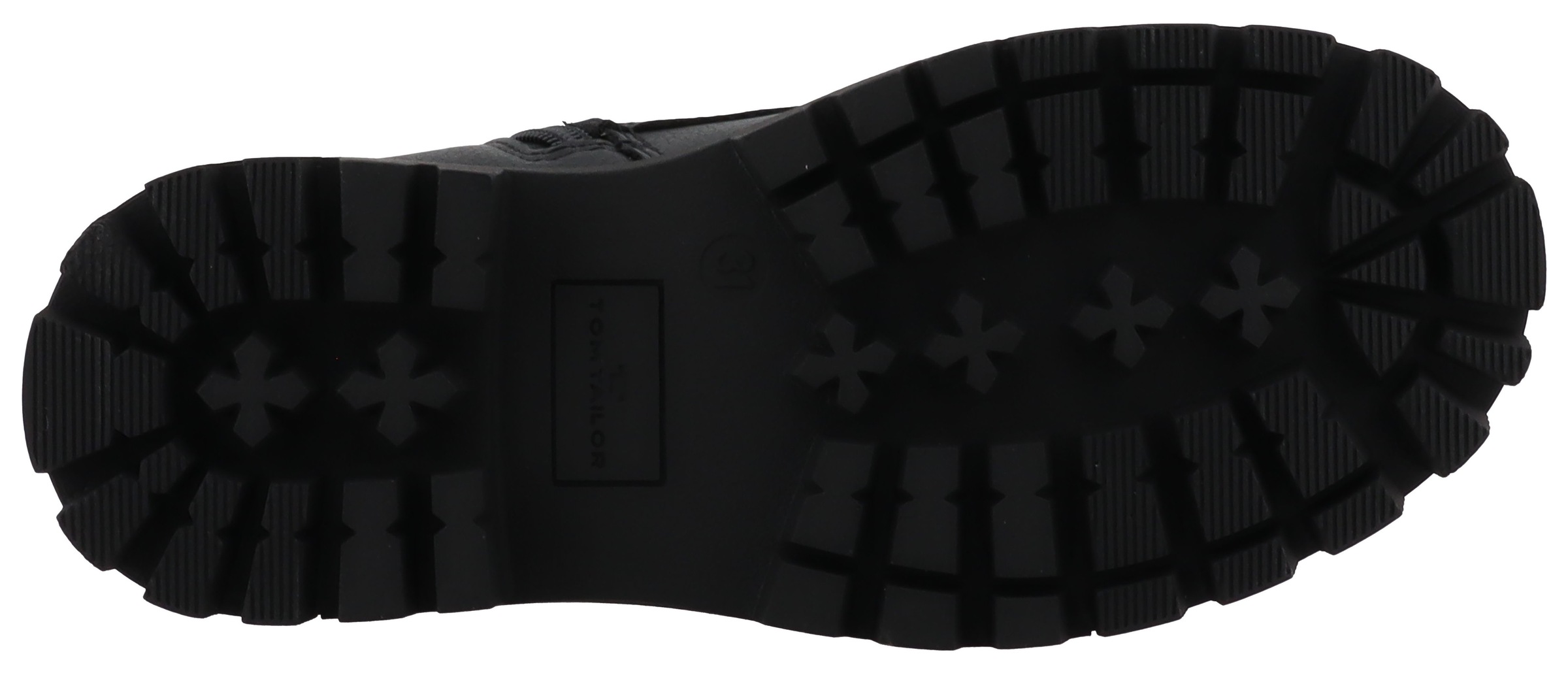 Farbe: Farbbezeichnung: schwarz, Material: Obermaterial: Lederimitat, Obermaterialeigenschaften: wasserabweisend, Innenmaterial: Warmfutter, Optik/Stil: Applikationen: Logoschriftzug, Details: Besondere Merkmale: in bequemer Form, Verschluss: Reißverschluss, Schnürung, Schuhspitze: rund, Sohle: Innensohlenmaterial: Textil, Laufsohlenmaterial: Synthetik, Laufsohlenprofil: stark profiliert, Eigenschaften: Membrane: TEX-Membrane, Passform/Schnitt: Schuhweite: Normal (Weite F)