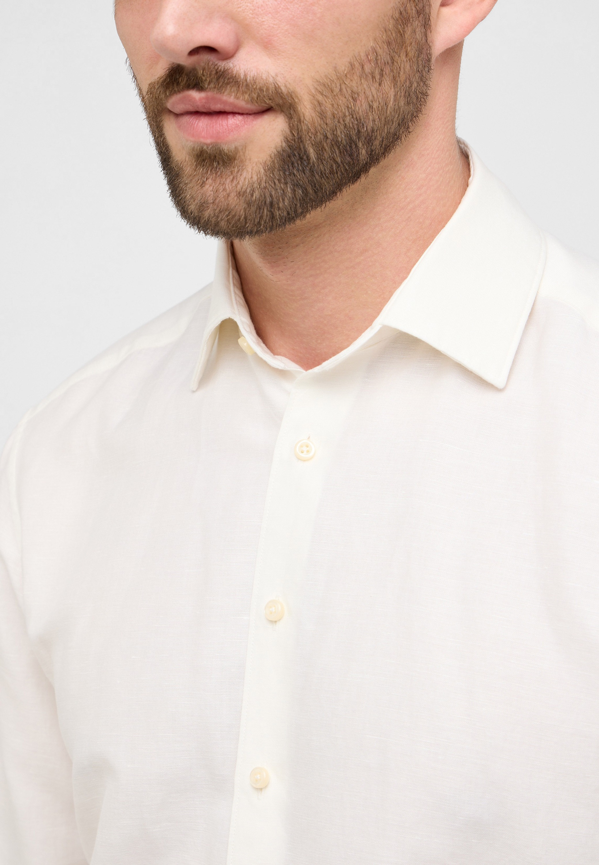 Das ETERNA LINEN SHIRT - die perfekte Mischung aus weicher Baumwolle und feinem Leinen. Unser unifarbenes Linen Shirt ist ein vielseitiges, sommerliches Hemd mit einem eleganten Look. Das hochwertige, bügelleichte Twill-Gewebe (59% Baumwolle, 41% Leinen) ist leicht und atmungsaktiv und fühlt sich angenehm kühl auf der Haut an. Der softe Kragen und und die soften Manschetten tragen zu einem lässigen und modernen Erscheinungsbild bei. Es ist mit einem Modern Kent-Kragen und verkürzter, abgerundeter Rumpflänge gefertigt und kann somit auch außerhalb der Hose getragen werden. Dieses COMFORT FIT Hemd lässt sich sehr gut kombinieren, alle die es gerne schick, aber nicht zu einengend mögen, werden diesen Schnitt schätzen. Bestellen Sie dieses super softe LINEN SHIRT aus unserer Premiumline ''1863 by ETERNA'' heute noch bequem online., Material: Materialzusammensetzung: 59% cotton, 41% Leinen, Materialart: Twill, Materialeigenschaften: Easycare, Pflegehinweise: Schonwäsche, Farbe: Farbbezeichnung: champagner, Passform/Schnitt: Kragen: Kentkragen, Ärmellänge: Langarm, Ärmelabschluss: Manschette, Passform: normal, Details: Taschen: Ohne Brusttasche, Verschluss: Knopfleiste, Nachhaltigkeit: Kurzlink Lizenznehmer Grüner Knopf: www.g-k.eu/eterna