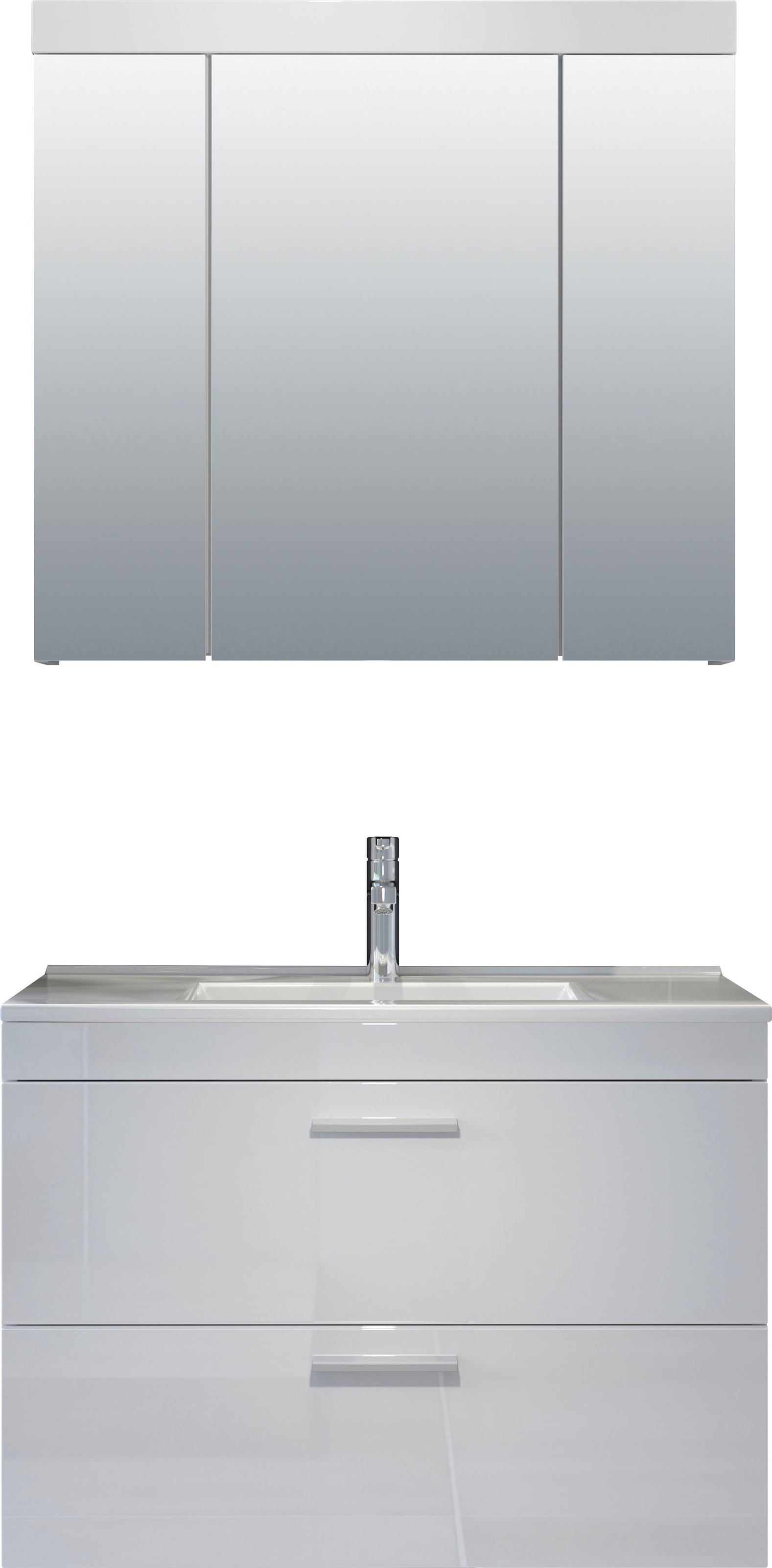 Produktdetails: Set beinhaltet: In folgenden Farben erhältlich: : Korpus/Front: Weiß Melamin / Weiß Hochglanz Tiefzieh, Fronten in Hochglanz, Farbe Griffe: Silber. Details zur Ausstattung: : Laufleisten der Schubkästen aus Metall, Füße sind nicht im Lieferumfang enthalten, inklusive Waschbecken, ohne Armatur. Set bestehend aus: : Waschbeckenunterschrank, Spiegelschrank. Waschbeckenunterschrank: : 2 Schubladen, Ohne Rückwand, Maße Siphonausschnitt (B/T): 7 x 23 cm, nur Wandmontage möglich, Maße (B/T/H): 80 x 44 x 57 cm. Spiegelschrank: : 3 Türen, verstellbare Einlegeböden, herausnehmbare Einlegeböden, optional LED-Beleuchtung möglich, Maße (B/T/H): 80 x 16 x 75 cm. , Serie: Devon, Art Griffe: Griffleiste, Farbe & Material: Material Beschläge: Metall, Material Griffe: Kunststoff, Materialhinweis: Das Label des FSC® weist nach, dass Sie mit dem Kauf dieser Produkte vorbildliche Waldwirtschaft - nach den strengen sozialen und wirtschaftlichen Standards des Forest Stewardship Council® - fördern und die Waldressourcen schonen., Farbbezeichnung: Weiß Melamin/Weiß Hochglanz Tiefzieh, Material: Holzwerkstoff, Optik: hochglanz, Beleuchtung: Modellbezeichnung: Devon, Maßangaben: Breite: 80 cm, Tiefe: 47 cm, Höhe: 190 cm, Lieferung & Montage: Lieferzustand: zerlegt, Aufbauhinweise: Für eine Wandmontage wird zusätzliches Montagematerial benötigt., inklusive Aufbauanleitung - eine zweite Person zum Aufbau wird empfohlen, Hinweise: Hinweis Maßangaben: Alle Angaben sind ca.-Maße., Markeninformationen: Badzeit ist Wohlfühlzeit. Diesem Anspruch folgend schafft Welltime moderne Badwelten, zum Entspannen und Krafttanken. Ob Einzelmöbel oder Serien, mit Welltime lässt sich das Badezimmer individuell gestalten und bereichern von Massivholz bis hin Hochglanzfronten. Ergänzt um Armaturen, Duschkabinen, Badaccessoires und Zubehör bildet Welltime die ganzheitliche Lösung rund um das Bad., Wissenswertes: Herstellungsland: Made in Ukraine, Wissenswertes: Material: : Korpus und Front: Holzwerkstoff, Korpus: melaminbeschichtet, Griffe aus Kunststoff, Scharniere aus Metall, Laufleisten der Schubkästen aus Metall. Informationen zu Lieferumfang und Montage: : Selbstmontage mit Aufbauanleitung, Montagematerial inklusive, Für die Wandmontage wird zusätzliches Montagematerial benötigt, Alles ca.-Maße, Beleuchtung bitte separat bestellen unter der Artikelnummer 834996, 243319, 782318. FSC®-zertifiziert: : Das Label des FSC® weist nach, dass Sie mit dem Kauf dieser Produkte vorbildlich Waldwirtschaft - nach den strengen sozialen und wirtschaftlichen Standards des Forest Stewardship Council® - fördern und die Waldressourcen schonen.. Pflegehinweise: : Pflegehinweise für Möbel aus Holzwerkstoffen (inklusive Melamin und MDF): Wischen Sie zur Pflege Ihres Möbels die Oberfläche mit einem mäßig feuchten Tuc