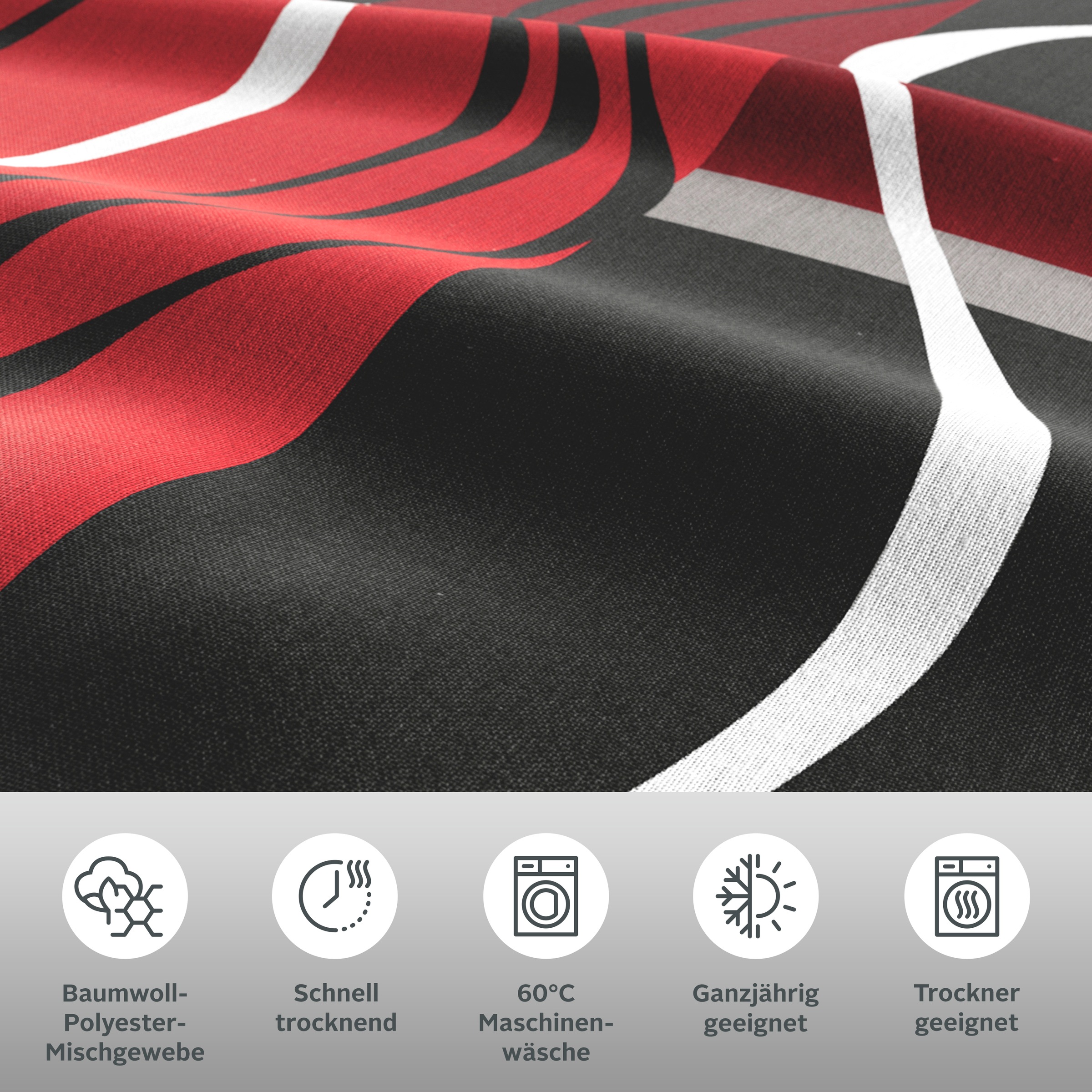 Das moderne Design aus Wellen und klaren Streifen macht die Bettwäsche Kelian der Marke my home zu einem tollen Accessoire in Ihrem Schlafzimmer. Die weichen, glatten Stoffqualitäten sind sehr hautfreundlich und pflegeleicht. Die Bettwäsche unterstützt Cotton made in Afrika und leistet somit Ihren Beitrag in Punkto Nachhaltigkeit. Kissen- und Bettbezug sind mit Knöpfen versehen, können bis 60°C gewaschen werden., Allgemein: Anzahl Teile: 2, Anzahl Bettbezüge: 1 Stk., Anzahl Kissenbezüge: 1 Stk., Maßangaben: Breite Bettbezug: 135 cm, Länge Bettbezug: 200 cm, Breite Bettbezug 2: 200 cm, Breite Kissenbezug: 80 cm, Länge Kissenbezug: 80 cm, Optik/Stil: Farbbezeichnung: anthrazit/rot, Optik Kissenbezug: gemustert, Optik Bettbezug: gemustert, Optik Bettbezug Wendeseite: gemustert, Wendefunktion: Wendekissenbezug, Verschluss: Verschluss Kissenbezug: Knöpfe, Verschluss Bettbezug: Knöpfe, Material: Materialart: Polycotton recycelt, Materialzusammensetzung: Obermaterial: 50% Baumwolle, 50% Polyester, Flächengewicht: 92 g/m², Pflegehinweis: Pflegehinweise: 60°C Maschinenwäsche, Keine chemische Reinigung, Trocknen mit reduzierter thermischer Belastung (60°C), mäßig heiß bügeln (150°C), nicht bleichen, Wissenswertes: Wissenswertes Kissenbezug: Das Design des Kissenbezugs kann von der Abbildung abweichen., Farbhinweise: Bitte beachten Sie, dass die Farben auf Ihrem Monitor von den Originalfarbtönen abweichen können., OEKO-TEX® Standard 100 Zertifikatsnummer: Sammelzertifikat 09.0.67812