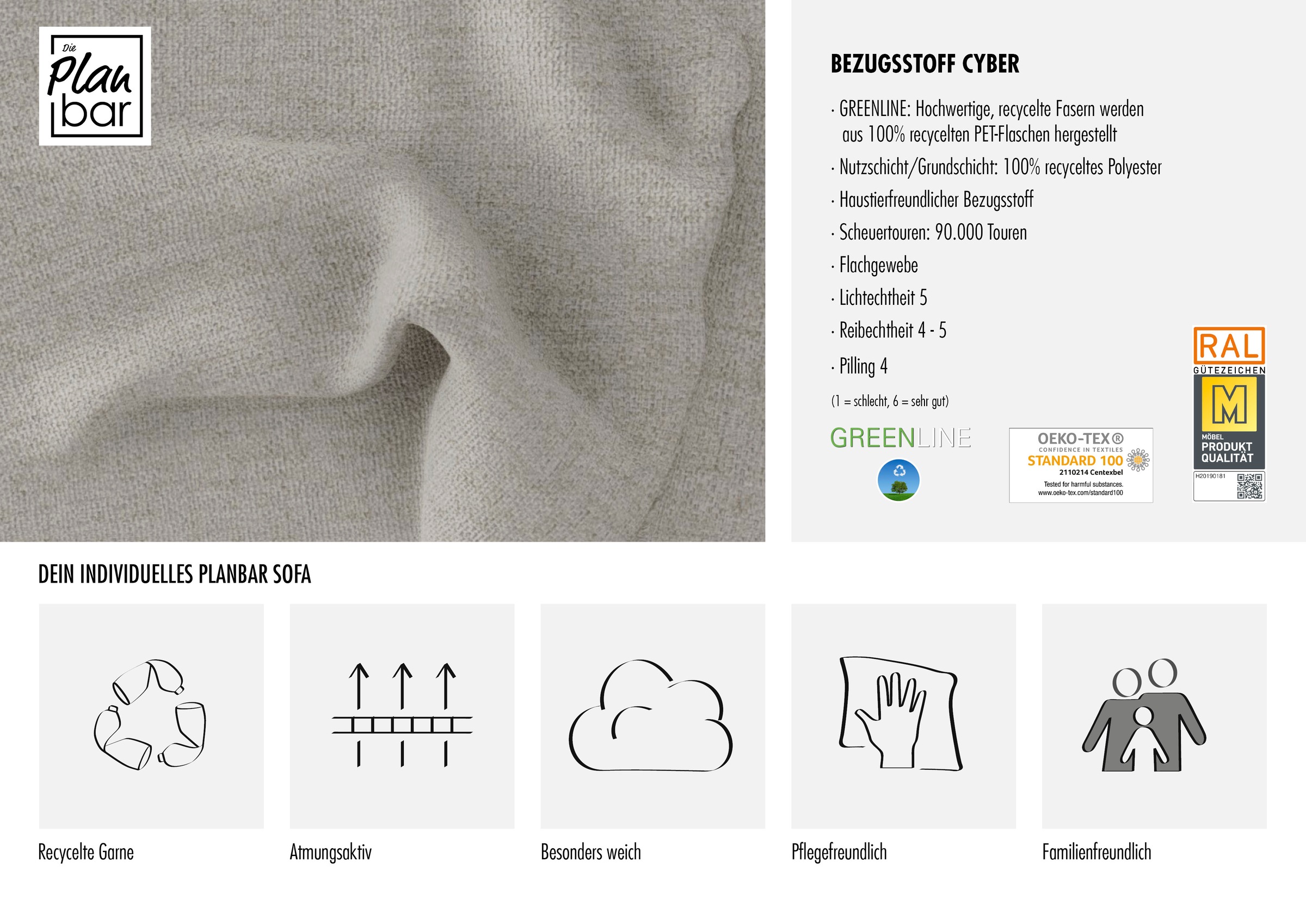 Ausstattung & Funktionen: Anzahl Füße: 4 Stk., Raumgewicht: 40 kg/m³, Polsteraufbau: Kaltschaum, Maßangaben: Belastbarkeit maximal: 120 kg, Gewicht: 17 kg, Höhe Füße: 18 cm, Sitzhöhe: 44 cm, Hinweis Maßangaben: Alle Angaben sind ca.-Maße., Breite: 93 cm, Höhe: 44 cm, Tiefe: 72 cm, Material: Abriebfestigkeit Bezug: 4-5, Holzart: Buche, Material Füße: Metall, Material Korpus: Massivholz, Material Untergestell: Massivholz, Pillingbildung Bezug: 4, Information Materialzusammensetzung: 100% Recyceltes Polyester, Scheuerbeständigkeit Bezug: 90.000 Scheuertouren, Bezug: Flachgewebe, Obermaterialeigenschaften: pflegeleicht, Farbe: Farbhinweise: Bitte beachten Sie, dass bei Online-Bildern der Artikel die Farben auf dem heimischen Monitor von den Originalfarbtönen abweichen können., Farbbezeichnung: Cyber anthrazit, Optik/Stil: Optik: Struktur, Lieferung & Montage: Aufbauhinweise: einfache Selbstmontage mit Aufbauanleitung, Lieferumfang: Zier- und Nierenkissen nicht im Lieferumfang enthalten., Lieferzustand: teilmontiert, nur Füße zu montieren, Hinweise: Pflegehinweise: Bitte beachten Sie die Pflegehinweise gemäß dem beiliegenden Produkt- und Materialpass., Qualitätssiegel: Das Goldene M, Gütesiegel der DGM, Wissenswertes: Herstellergarantie: 2 Jahre gemäß den Garantie-Bedingungen
