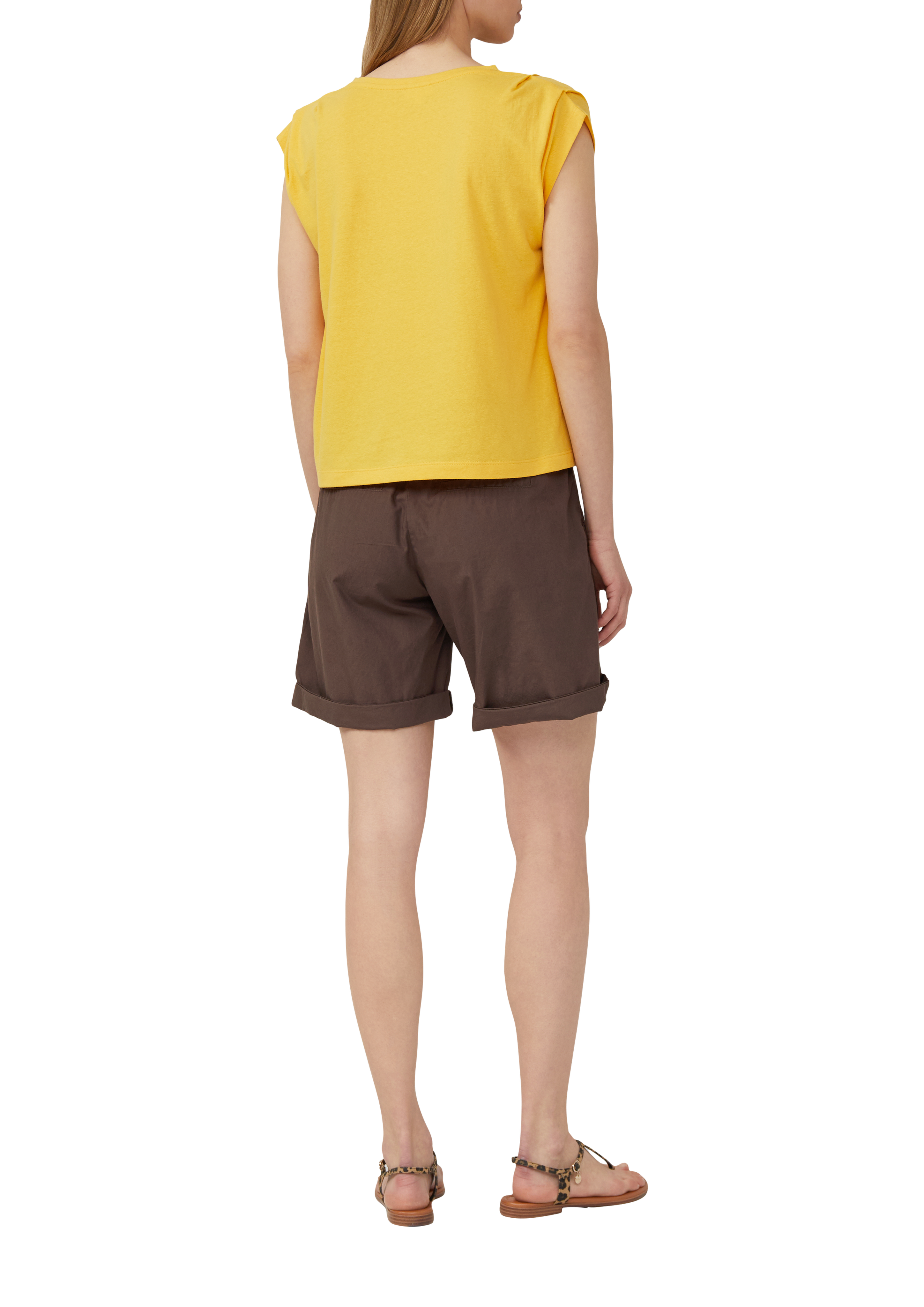Lässig-leichtes Jersey-Top in verkürzter Länge mit entspanntem Relaxed Fit. Die raffinierten Faltendetails am Rundhalsausschnitt und das weiche Flammgarn machen das ärmellose Shirt zum perfekten Begleiter für deine entspannten Casual-Looks.