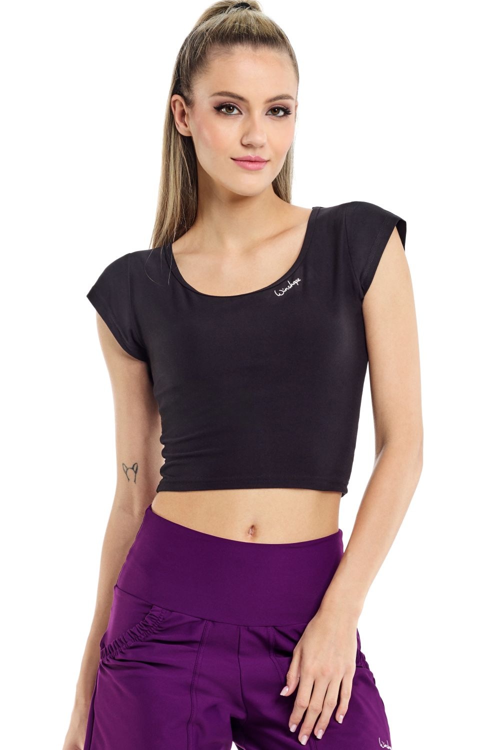 Functional Light and Soft Cropped Kurzarmshirt AET137LS, Winshape Ultra Soft Style : We Scream for Ice Cream!: Das kurze, super weiche, leichte und funktionelle Kurzarmshirt AET137LS sorgt für einen sportlich eleganten Look, den Du 24/7 genießen kannst und willst! Der großzügig geschnittene Schulterbereich mit kurzen Ärmeln und die figurbetonte Form unter der Brust bringen Deine Sanduhrfigur perfekt zur Geltung und garantieren uneingeschränkte Bewegungsfreiheit. Das speziell für Dein Training entwickelte Funktionsstoff-Gemisch leitet die Feuchtigkeit vom Körper ab und garantiert ein trockenes, angenehmes Tragegefühl., Material: Materialzusammensetzung: 85% Polyester, 15% Elasthan, Pflegehinweise: Maschinenwäsche, Farbe: Farbbezeichnung: schwarz, Passform/Schnitt: Ausschnitt: Rundhals, Ärmellänge: Kurzarm, Details: Besondere Merkmale: Functional Light and Soft Cropped