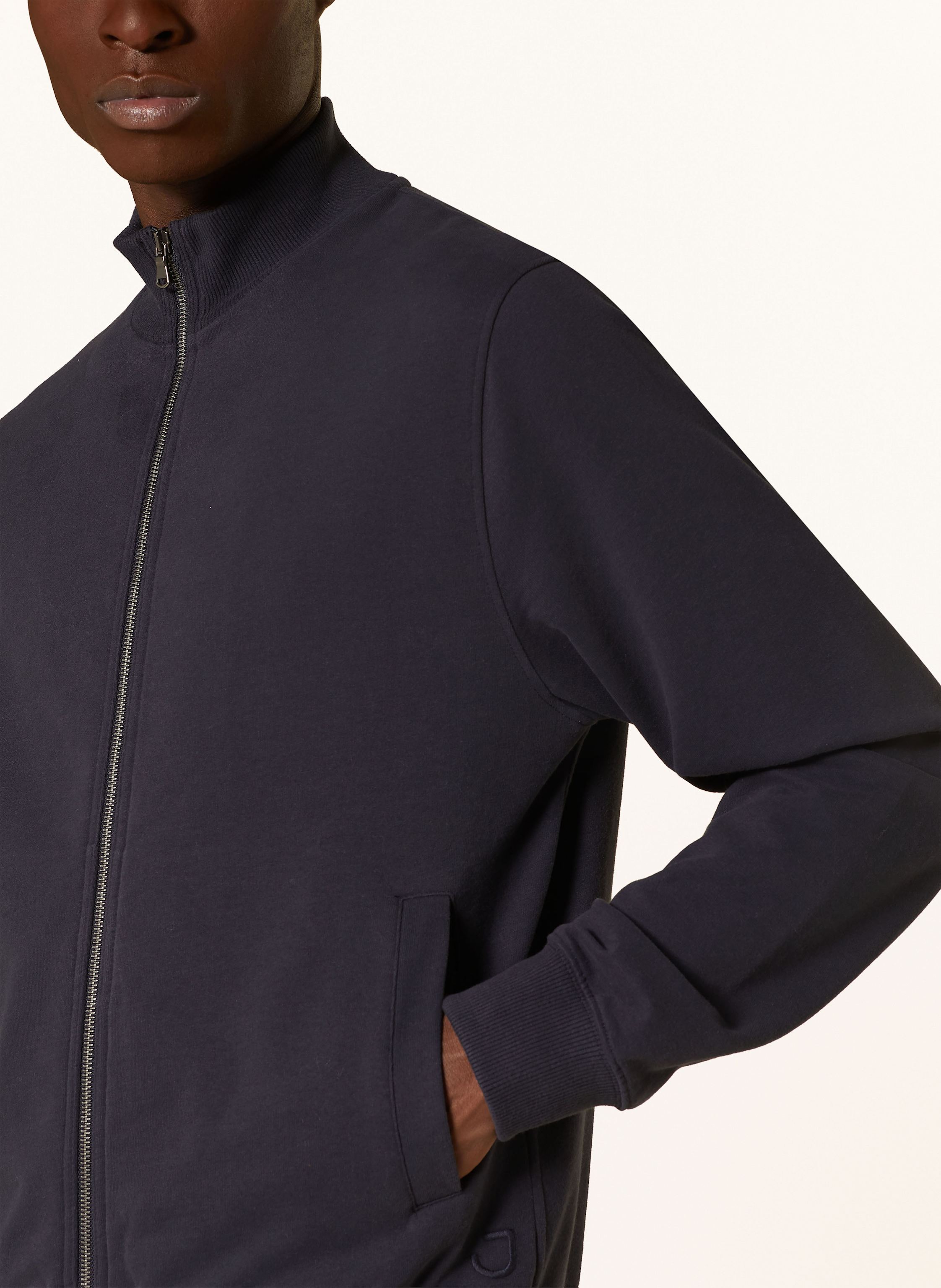 Gerader Schnitt. Stehkragen. Schließt mit Zwei-Wege-Reißverschluss. Seitliche Leistentaschen. Rippbündchen an Ärmeln und Saum. Soft Finish innen. Weiche Haptik