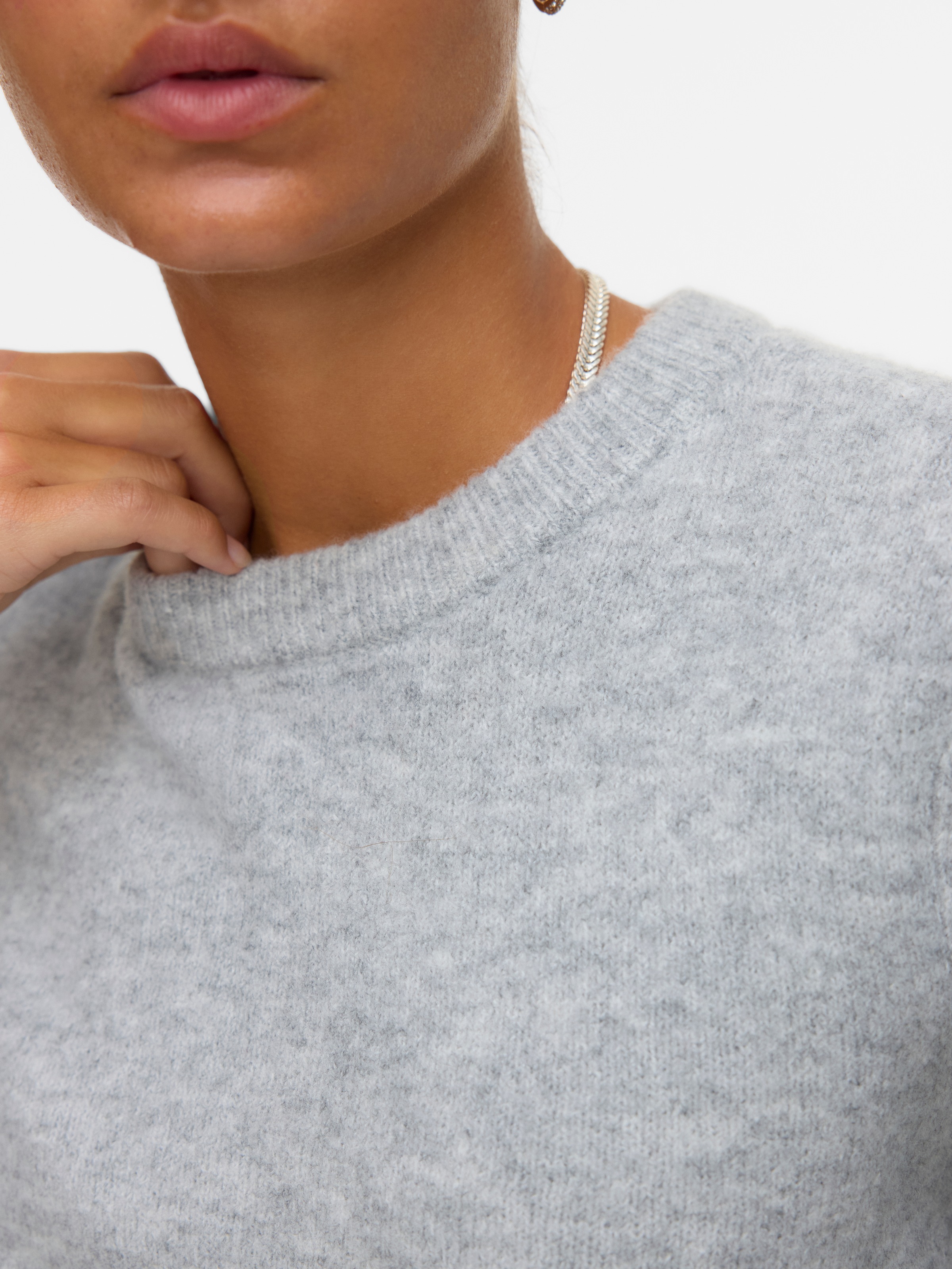 Trendiger Rundhalspullover für Frauen von Vero Moda. Mit einem lässig geschnittenen Schnitt. Die Ärmel sind halblang. . Durch die elastische Strick-Qualität ist das Oberteil bewegungsfreundlich und wärmt., Material: Materialzusammensetzung: Obermaterial: 85% Polyester, 7% Polyacryl, 5% Wolle, 3% Elasthan, Materialart: Strick, Materialeigenschaften: elastisch, pflegeleicht, Pflegehinweise: Maschinenwäsche, Optik/Stil: Optik: meliert, unifarben, Farbe: Farbbezeichnung: Light Grey Melange, Passform/Schnitt: Ausschnitt: Rundhals, Ärmellänge: Halbarm, Ärmelabschluss: Rippbündchen, Rumpfabschluss: Rippbündchen, Passform: loose fit, Schnittform Länge: normal, Details: Verschluss: ohne Verschluss