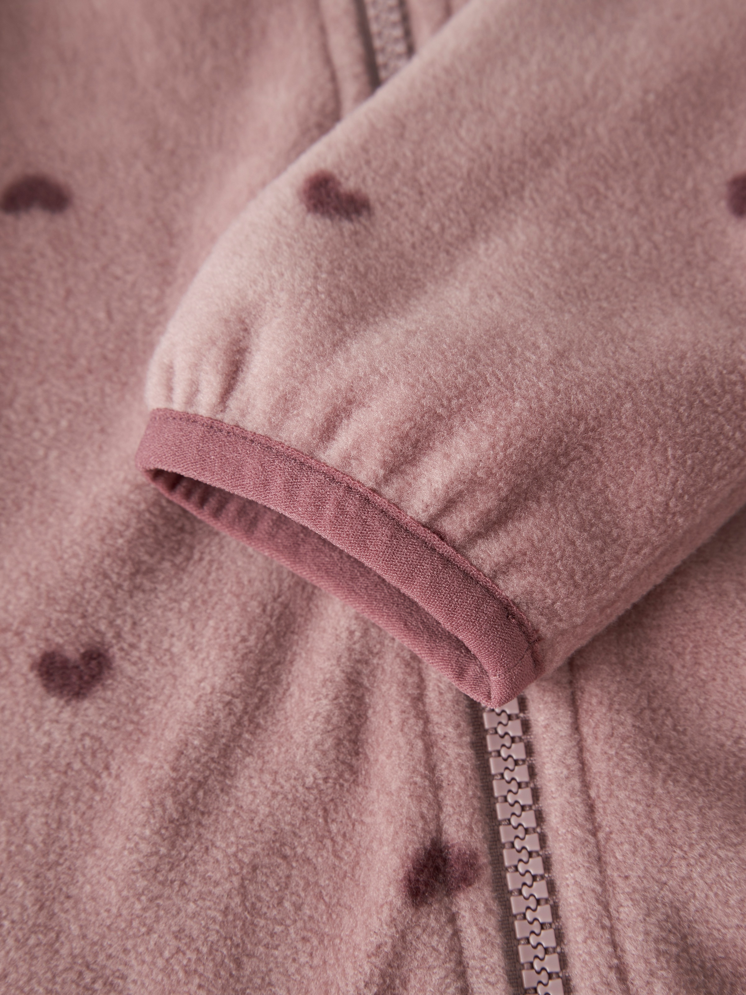 Wenn die Temperaturen sinken, hat die Fleecejacke für Mädels von Name It ihren großen Auftritt. Der Look wird mit einem Allover-Druck abgerundet. Die Fleecejacke isoliert gut gegen Kälte und ist außerdem sehr angenehm zu tragen. Sie hält warm und ist ein toller Begleiter für einen Ausflug in den Zoo oder ins Kino., Material: Materialzusammensetzung: Obermaterial: 100% Polyester, Materialart: Fleece, Materialeigenschaften: pflegeleicht, Pflegehinweise: Maschinenwäsche, Optik/Stil: Optik: bedruckt, Farbe: Farbbezeichnung: Woodrose, Passform/Schnitt: Ausschnitt: hoch geschlossener Ausschnitt, Ärmellänge: Langarm, Passform: regular fit, Schnittform Länge: normal, Details: Kapuze: ohne Kapuze, Applikationen: Allover-Druck, Verschluss: Reißverschluss, Verschlussdetails: durchgehend