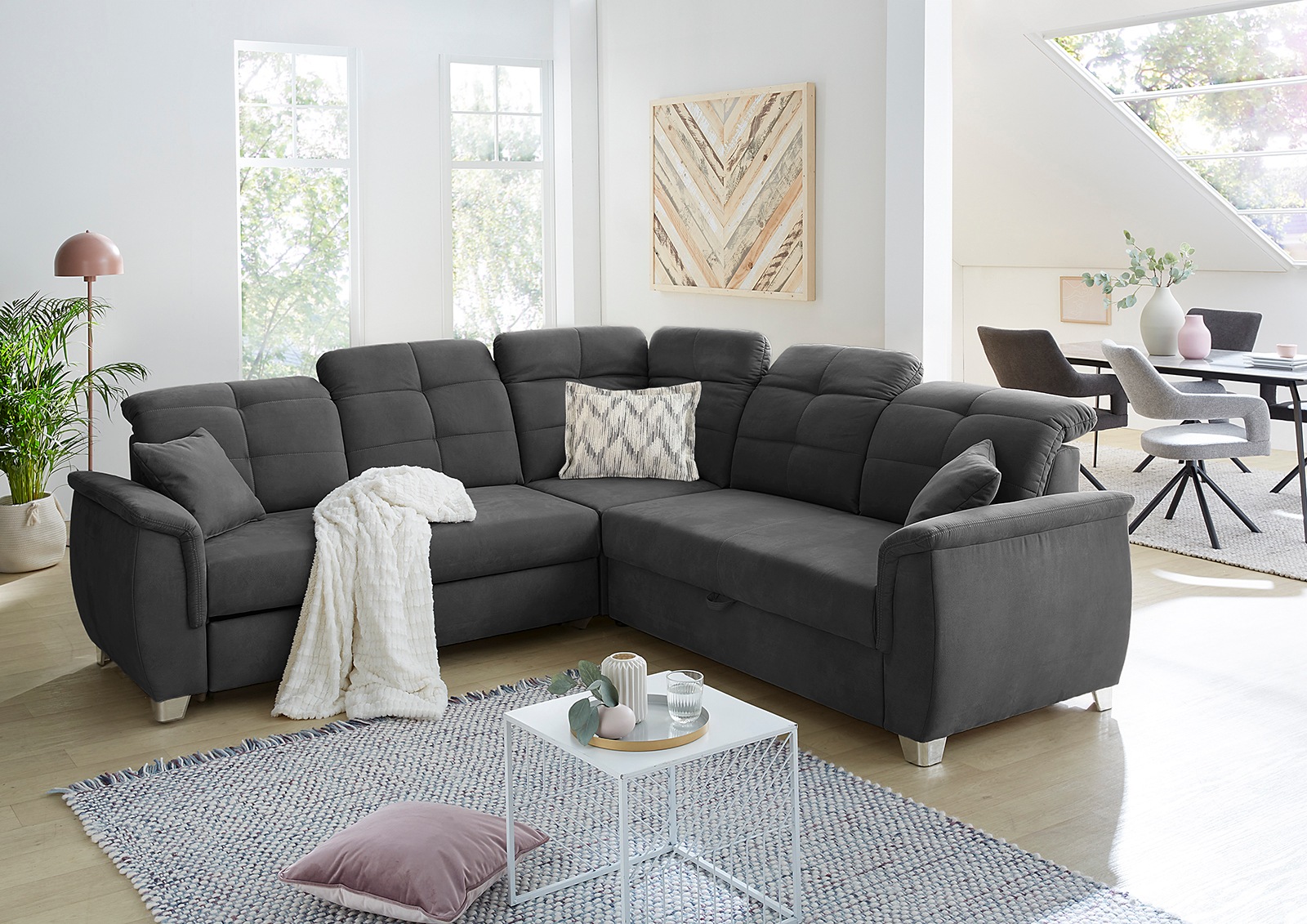 Jockenhöfer Gruppe Ecksofa "Udine L-Form" 6 individuell, verstellbaren Kopfteilen, Gästebett- und Relaxfunktion