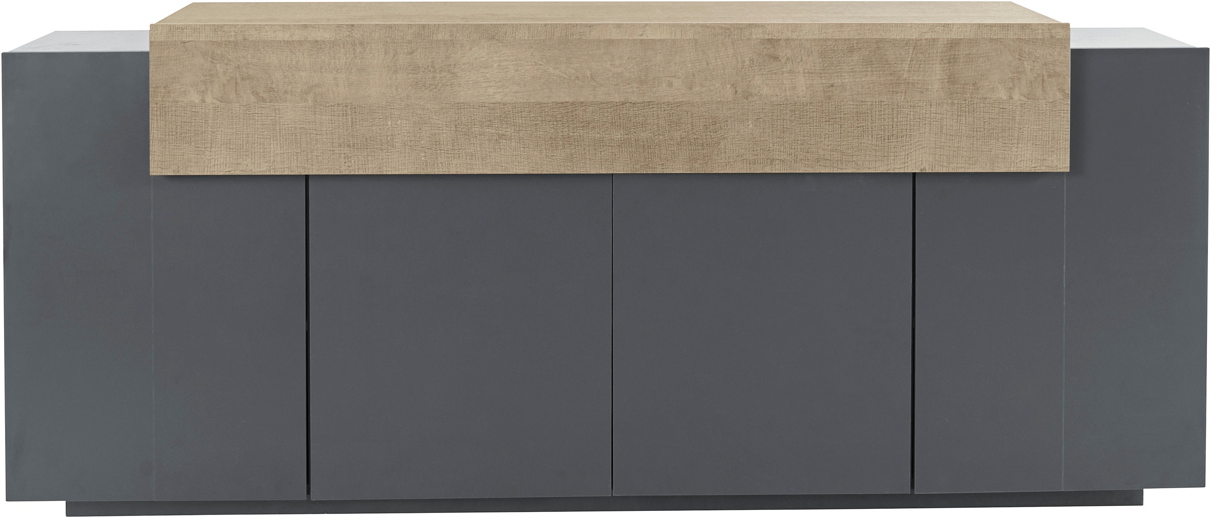 Produktdetails: Markeninformationen: INOSIGN ist eine sorgfältig entwickelte Kollektion von innovativen und außergewöhnlichen Einrichtungsgegenständen - jedes Stück mit einem gewissen Extra. Die Marke folgt weder Stilen noch Epochen, sondern nur einem Ziel: Frische und Einzigartigkeit zu transportieren - ob modern, retro oder zeitlos, INOSIGN richtet das Zuhause überraschend und individuell ein., Ausstattung & Funktionen: Anzahl Einlegeböden: 3 Stk., Anzahl geschlossene Fächer: 8 Stk., Anzahl Klappen: 1 Stk., Anzahl Türen: 4 Stk., Art Einlegeböden: variabel einsetzbar, Art Griffe: ohne Griff, Art Türen: Drehtüren, Klapptür, Ausstattung: Push-to-open-Funktion, Maßangaben: Breite: 200 cm, Tiefe: 45 cm, Höhe: 85,6 cm, Gewicht: 79 kg, Breite Fachinnenmaß: 72,6 cm, Tiefe Fachinnenmaß: 41,4 cm, Höhe Fachinnenmaß: 20,8 cm, Breite Fachinnenmaß 2: 47,6 cm, Tiefe Fachinnenmaß 2: 36,2 cm, Höhe Fachinnenmaß 2: 70,8 cm, Breite Fachinnenmaß 3: 98,4 cm, Tiefe Fachinnenmaß 3: 36,2 cm, Höhe Fachinnenmaß 3: 53,4 cm, Hinweis Maßangaben: Alle Angaben sind ca.-Maße., Belastbarkeit Oberboden: 30 kg, Material: Material: FSC®-zertifizierter Holzwerkstoff, Material Korpus: Holzwerkstoff, Material Oberboden: FSC®-zertifizierter Holzwerkstoff, Material Rückwand: Hartfaserplatte, Material Türen: FSC®-zertifizierter Holzwerkstoff, Oberflächenmaterial Front: Holz, Oberflächenmaterial Korpus: Holz, Materialhinweis: Das Label des FSC® weist nach, dass Sie mit dem Kauf dieser Produkte vorbildliche Waldwirtschaft - nach den strengen sozialen und wirtschaftlichen Standards des Forest Stewardship Council® - fördern und die Waldressourcen schonen., Farbe: Farbe Korpus: anthrazit matt, Farbe Türen: anthrazit matt/Oak, Farbhinweise: Bitte beachten Sie, dass bei Online-Bildern der Artikel die Farben auf dem heimischen Monitor von den Originalfarbtönen abweichen können., Farbbezeichnung: anthrazit matt/Oak, Optik/Stil: Oberflächenoptik Front: matt, Oberflächenoptik Korpus: matt, Lieferung & Montage: Anzahl Packstücke: 2 Stk., Art Montage: stehend montierbar, Aufbauhinweise: einfache Selbstmontage mit Aufbauanleitung, Lieferumfang: Aufbauanleitung, Lieferzustand: zerlegt, Hinweise: Pflegehinweise: feucht abwischbar, Wissenswertes: Wissenswertes: Klappen mit Bremshalterung, Herstellungsland: Made in Italy, Serie: Serie: Coro