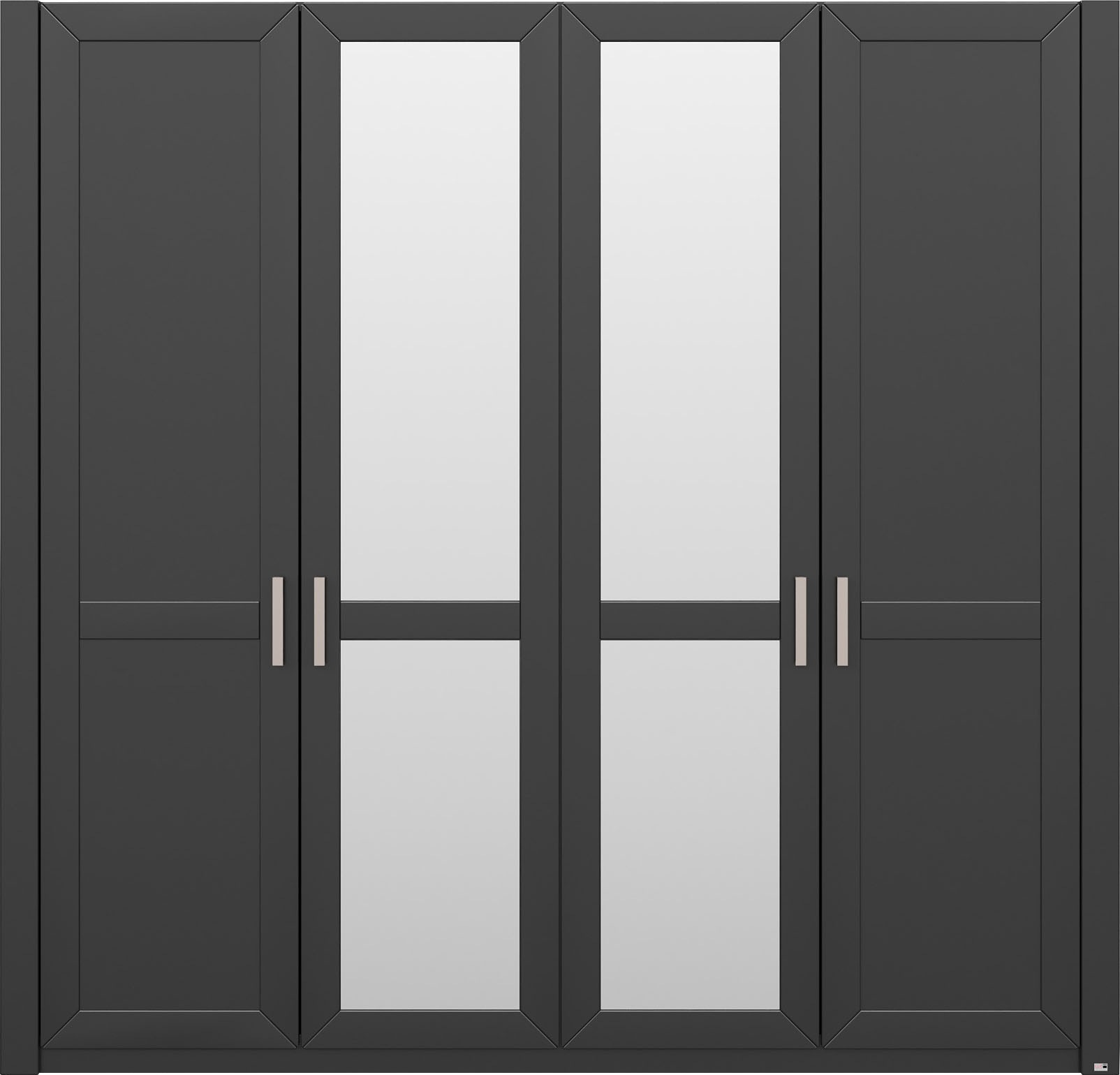 Produktdetails: Markeninformationen: set one by Musterring bringt ordentlich Schwung in die Einrichtung: Die frische Einrichtungsmarke bietet topaktuelle Möbel für die Bühne des Lebens. Das Sortiment richtet sich an junge Menschen jeden Alters – an trendbewusste Individualisten also, die gerne auf der Höhe der Zeit wohnen und eine moderne Einrichtung als Ausdruck ihrer Kreativität und Lebensfreude verstehen. Die stylischen Möbel sind perfekt miteinander kombinierbar und ergänzen sich zu einem harmonischen Gesamtbild., Anzahl Teile: 1 Stk., Ausstattung & Funktionen: Anzahl Kleiderstangen: 2 Stk., Anzahl Kleiderstangen groß: 2 Stk., Anzahl Türen: 4 Stk., Anzahl Spiegel: 2 Stk., Anzahl Griffe: 4 Stk., Art Einlegeböden: fest, Art Griffe: Bügelgriff, Art Spiegeltüren: teilverspiegelt, Art Türen: Drehtüren, Maßangaben: Breite: 215 cm, Tiefe: 60 cm, Höhe: 207 cm, Gewicht: 145 kg, Stärke Korpuswände: 2 cm, Länge Kleiderstangen: 105 cm, Länge Kleiderstangen groß: 105 cm, Breite Einlegeböden: 105 cm, Belastbarkeit Einlegeböden maximal: 3 kg, Hinweis Maßangaben: Alle Angaben sind ca.-Maße., Material: Material: Spanplatte, Material Korpus: Spanplatte, Material Türen: MDF, Material Kleiderstangen: Metall, Material Griffe: Metall, Material Oberboden: Spanplatte, Material Beschläge: Metall, Material Scharniere: Metall, Material Bodenträger: Metall, Material Einlegeböden: Spanplatte, Farbe: Farbbezeichnung: Grau Anthrazit, Farbe Korpus: Grau Anthrazit, Farbe Türen: Grau Anthrazit, Farbe Griffe: Nickel matt, Farbe Kleiderstangen: chrom, Farbhinweise: Bitte beachten Sie, dass bei Online-Bildern der Artikel die Farben auf dem heimischen Monitor von den Originalfarbtönen abweichen können., Lieferung & Montage: Lieferzustand: zerlegt, Art Montage: Wandmontage, Aufbauhinweise: inklusive Aufbauanleitung - eine zweite Person zum Aufbau wird empfohlen, Hinweise: Zubehörartikel: Beleuchtung 251 nachbestellbar, Pflegehinweise: pflegeleicht, Wissenswertes: Herstellergarantie: 5 Jahre gemäß den Garantie-Bedingungen, Herstellungsland: Made in Europe, Technische Daten: WEEE-Reg.-Nr. DE: 49.616.694