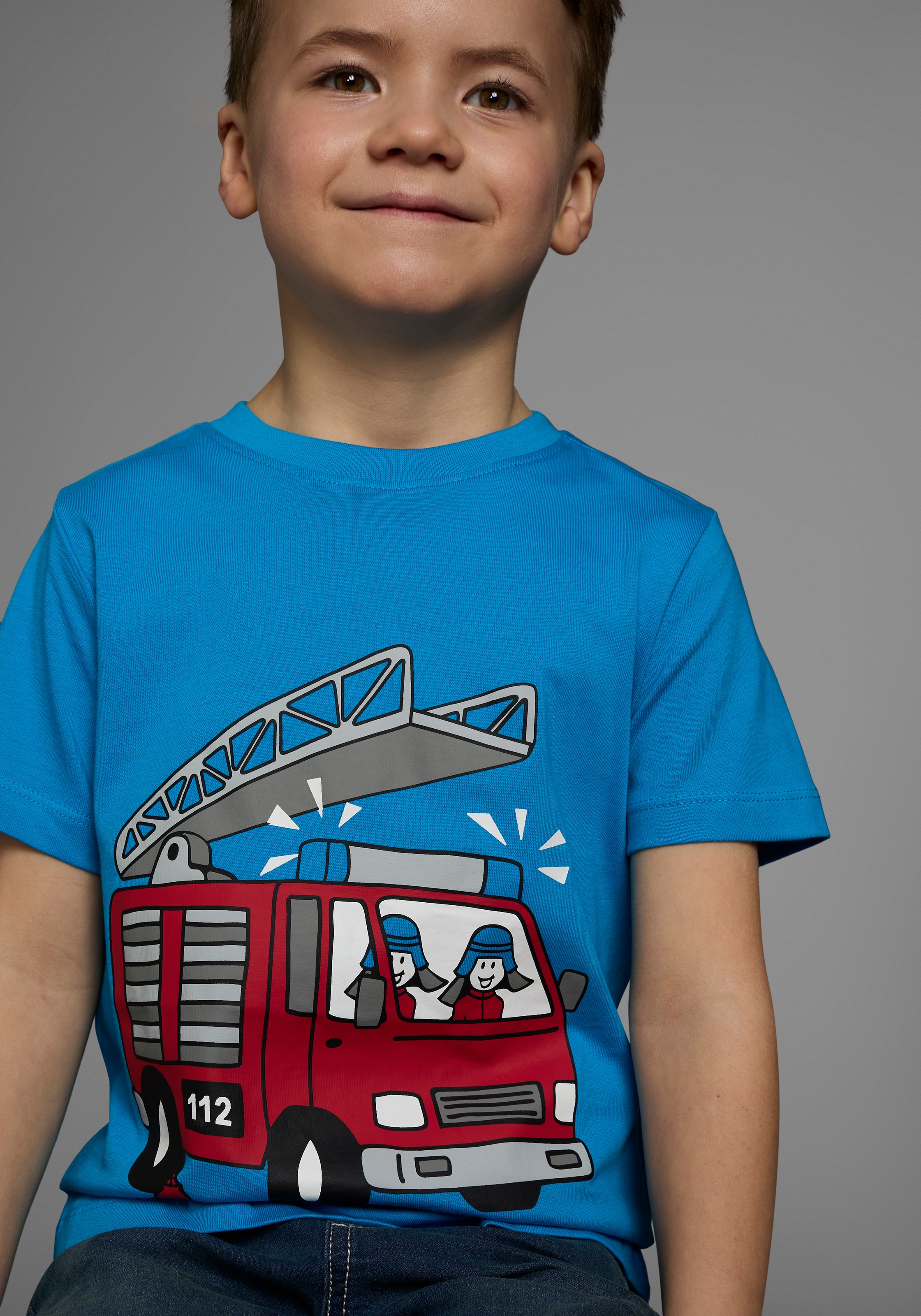 KIDSWORLD T-Shirt "Mit coolem FEUERWEHR Druck" Kurzarm, Basic-Passform, mit stylischem Druck, Rundhalsausschnitt