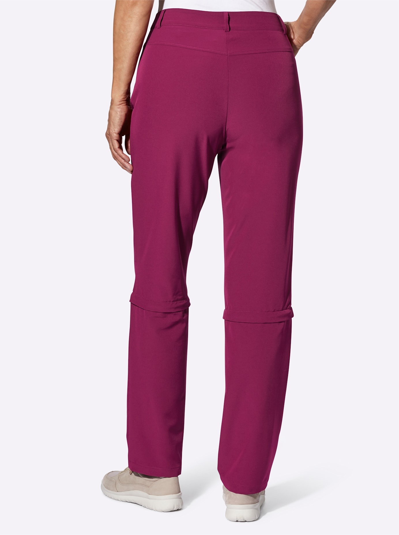 Funktions-Hose von langer zu knielanger Hose durch Reißverschluss. robust und wasserabweisend Reißverschluss mit Druckknopf Gürtelschlaufen 2 Taschen Formgebende Nähte am Knie. Fußweite ca. 38 cm. Ohne Gürtel. 92% Polyester, 8% Elasthan. Maschinenwäsche., Material: Materialzusammensetzung: 92% Polyester, 8% Elasthan, Pflegehinweise: Maschinenwäsche, Optik/Stil: Optik: unifarben, Farbe: Farbbezeichnung: malve, Details: Taschen: Eingrifftaschen, Verschluss: Knopf, Reißverschluss