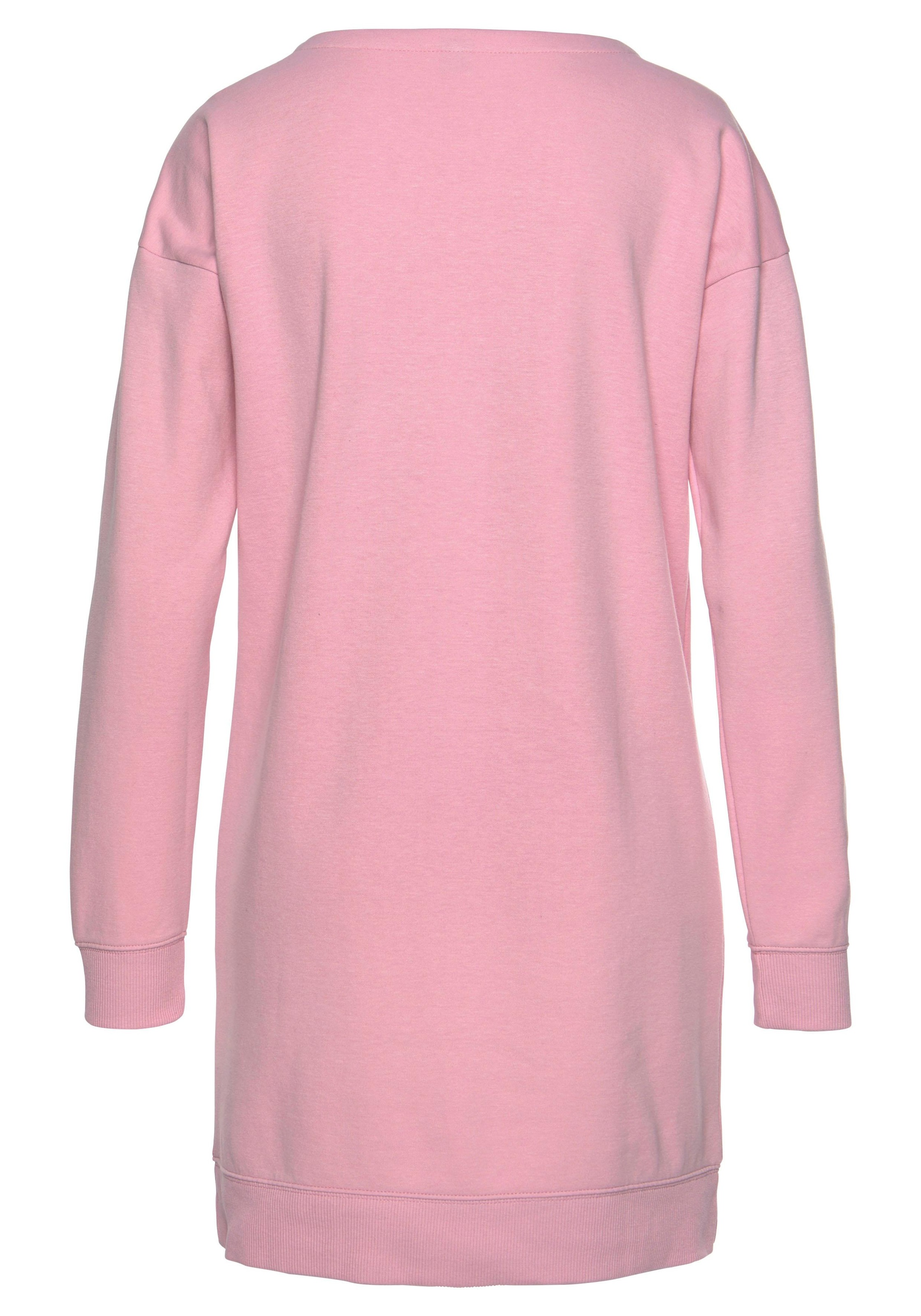 Sweatkleid von Bench. Teilungsnähte und Eingrifftaschen. Großes Bench Logo. Aus 60% Baumwolle (unterstützt Cotton made in Africa), 40% Polyester., Material: Materialzusammensetzung: Obermaterial: 60% Baumwolle, 40% Polyester, Materialart: Interlock, Pflegehinweise: Maschinenwäsche, Optik/Stil: Optik: unifarben, Stil: Basic, Passform/Schnitt: Ausschnitt: Rundhals, Ausschnittdetails: abgesteppte Kante, Ärmellänge: Langarm, Ärmelabschluss: Rippbündchen, Rumpfabschluss: Rippbündchen, Passform: bequem, Schnittform Länge: kurz, Details: Applikationen: Logodruck, Taschen: Eingrifftaschen, Besondere Merkmale: mit seitlichem Logoprint, Loungewear, Farbe: Farbbezeichnung: rosa-schwarz