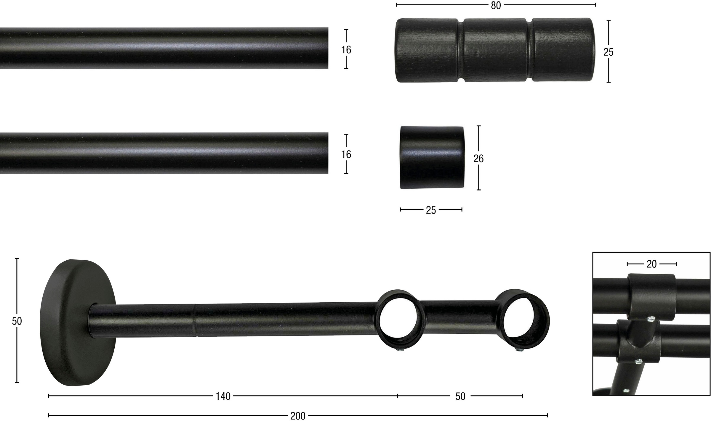 GARESA Gardinenstange "STAURA" Ø 16 mm 2 läufig-läufig Wunschmaßlänge Vorhanggarnitur, verlängerbar, Knopf mit 2 Rillen,...