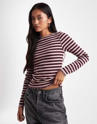 Oberteil von New Look Dein neues Lieblingsteil Streifendesign Carmenausschnitt Langärmlig Schmale Passform