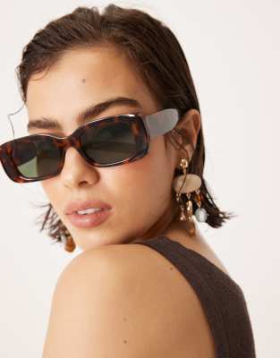 Stradivarius - Rechteckige Sonnenbrille in brauner Schildpatt-Optik